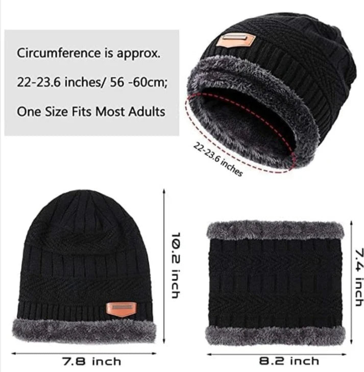 Perfect for men & women, this free-size winterwear combo is made with thick knitted wool + ultra-soft fleece lining for maximum insulation and comfort.